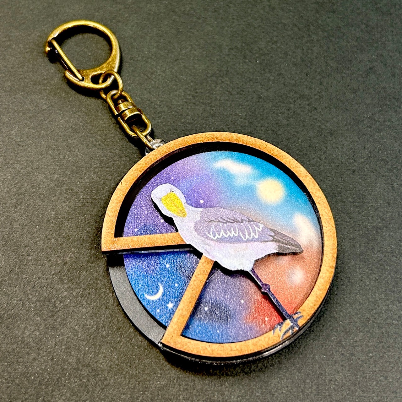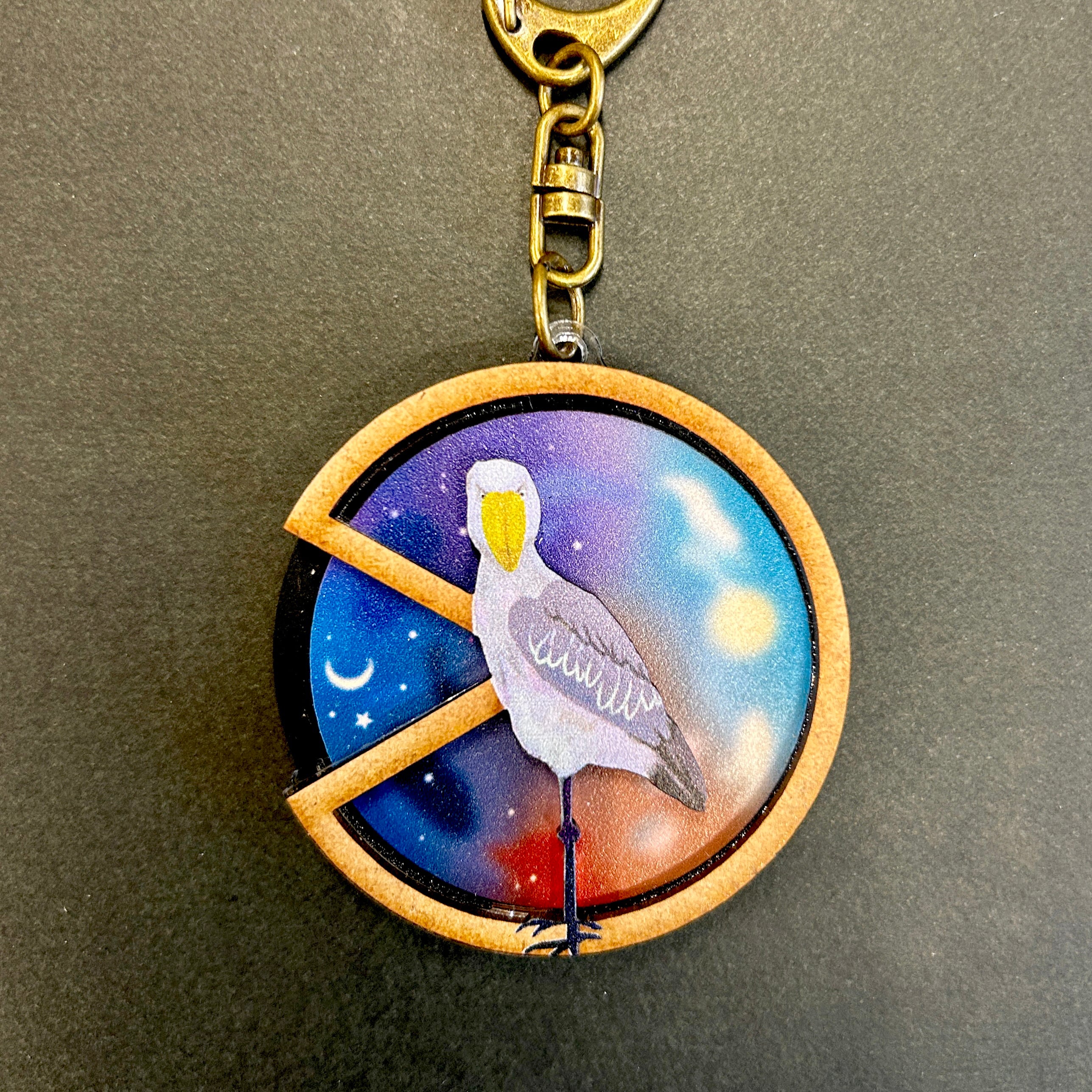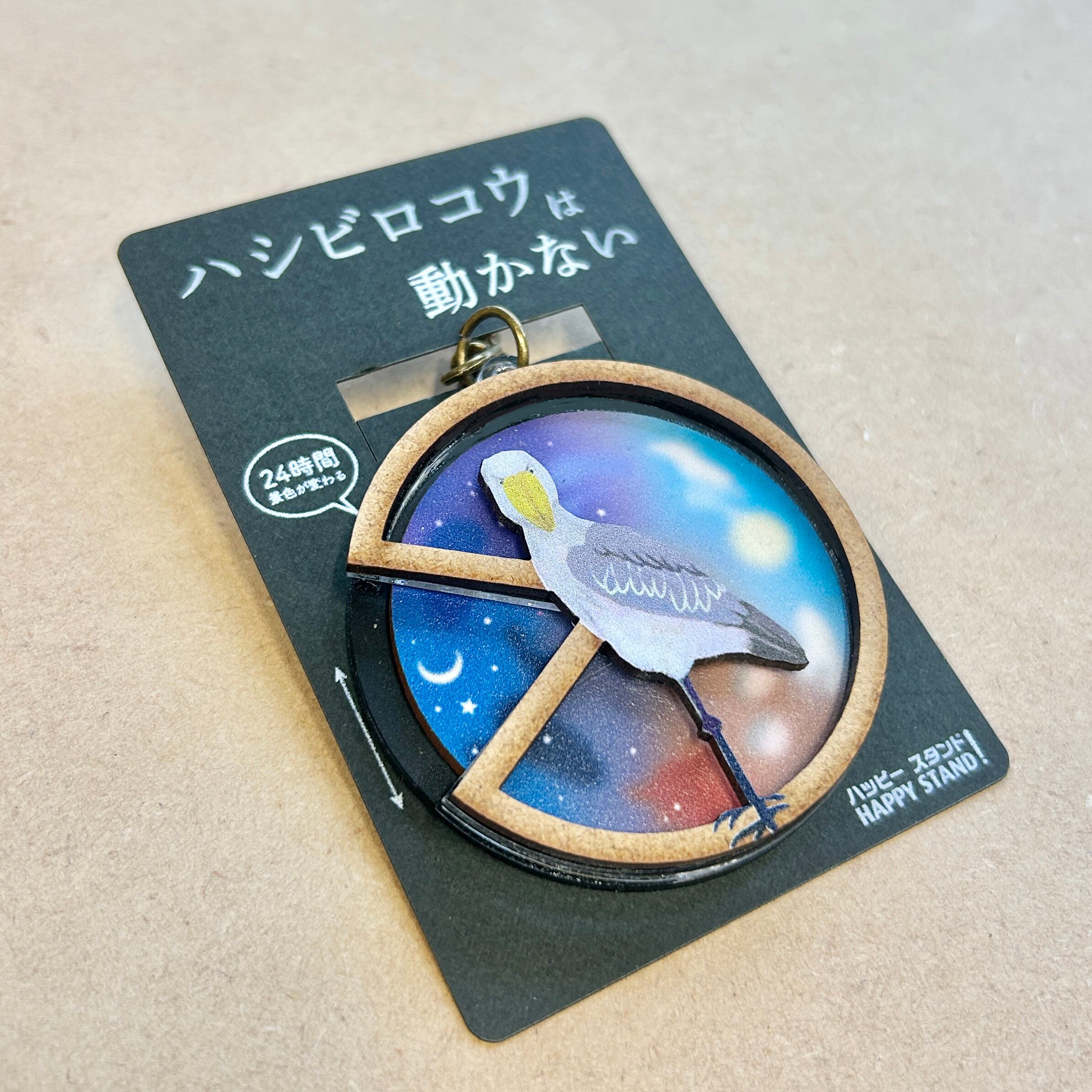 動かないハシビロコウの1日を楽しめるキーホルダーです。