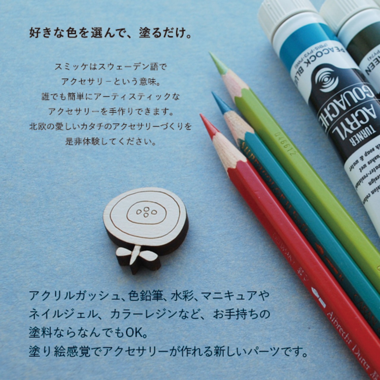 好きな色を選んで塗るだけで、簡単にアクセサリーや小物ができる