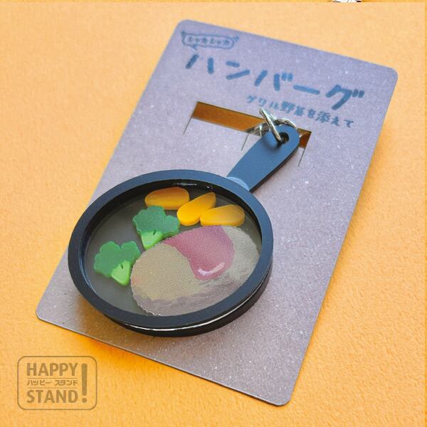 ハンバーググリルをフライパンでシャカシャカつくるキーホルダーです。